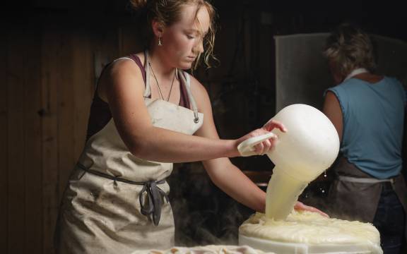 Die vielen verschiedenen Kräuter und Gräser der Alpweiden und das kristallklare Bergwasser ergeben die gesunde und gehaltvolle Alpmilch. Diese wird vor Ort über dem Feuer oder mit Feuer erzeugtem Dampf auf der Alp verkäst. Daraus entsteht der einzigartige Berner Alpkäse AOP und nach ausgedehnter Lagerung der extraharte Berner Hobelkäse AOP – die reife Verführung.